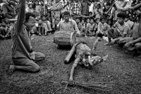 Charak Puja is performed by usually ten to twelve members, including both men and women. The bearers of the ritual are called Charkia and the main performer Deoboinshi. The festival starts from fast. On this festival the men and women who takes �brata�(fast) go through the month long fasting from sunrise to sunset, live strictly on fruits and have to do daily worship the god to get the blessing from the lord. On the day of the �Charak� or the �Gajan�, as it is also called, Trees and Bamboo stages are made on trees poles, the height ranging from 15 to 20 feet. The performers then hung their back with a pointed hanger and jump from the stage onto the ground laid with broken glass, nails thorns, knives & other devious weapons and other pointed objects. The excitement reaches to apex when the performers rise and without a single wound. Devotees fall on this ground, but are not hurt. It is believed that Lord Shiva has done this miracle by giving them his blessings. There are yet other devotees whose body can be seen overhanging from a hook fixed to the stage and 3 to 7 times run clockwise. Charak Puja is one way to reach salvation, so is believed by these men and women.