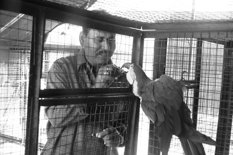the bird trainer and his prized macau (Anamitra Chakladar)